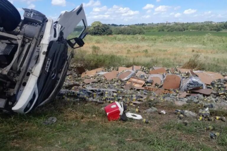 Ocurrió en la ruta 11 después de que el camión que transportaba botellas de...