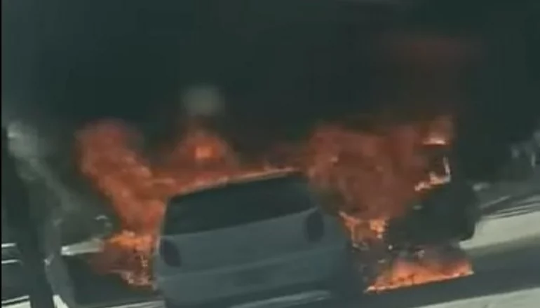 En el lugar se encontraba un auto marca Suzuki Fun color blanco que era conducido por una mujer de 49 años, quien iba acompañada de una amiga. De pronto. comenzó a salir humo del motor y en segundos el vehículo quedó envuelto en llamas, por lo que las ocupantes descendieron. El auto quedó destruido en gran parte.